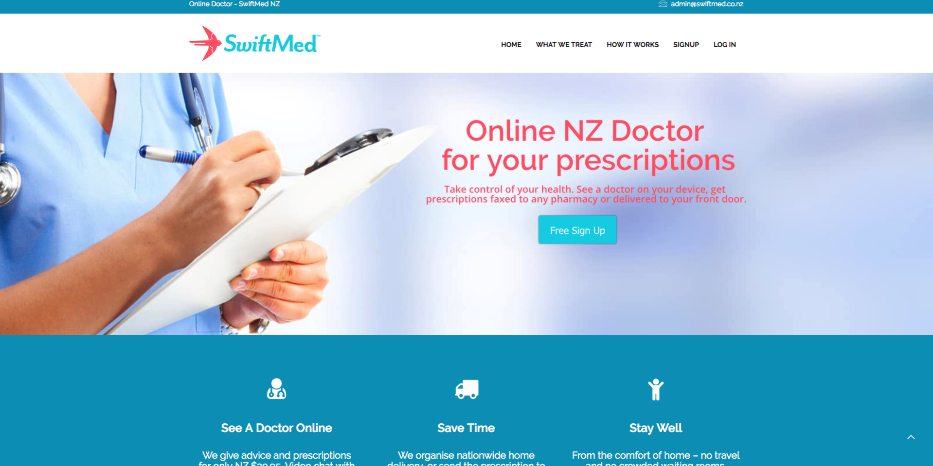 Swiftmed is an online prescription and GP service in New Zealand. They wanted a site that users could sign-up to and book an online appointment with doctor Sam. We successfully implemented these features and now Swiftmed are operating successfully treating patients nationwide.